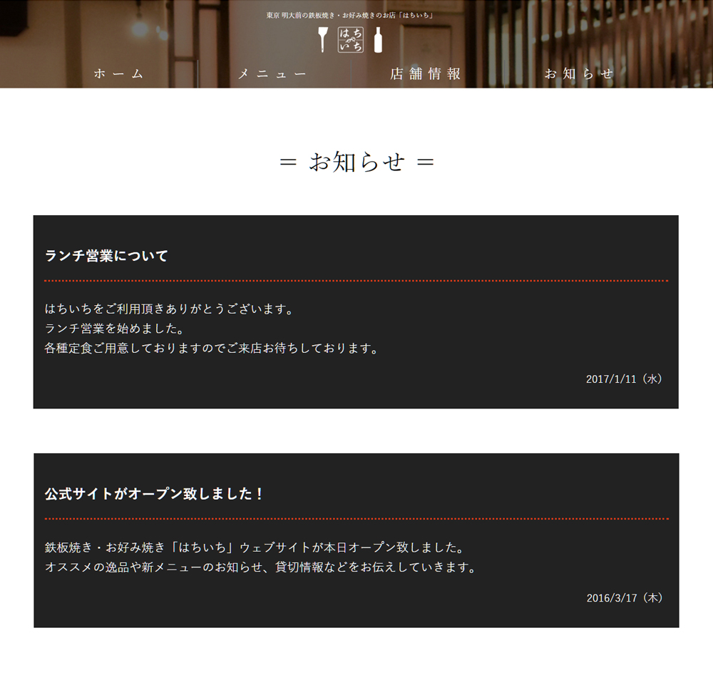 鉄板焼き『はちいち』ウェブサイト